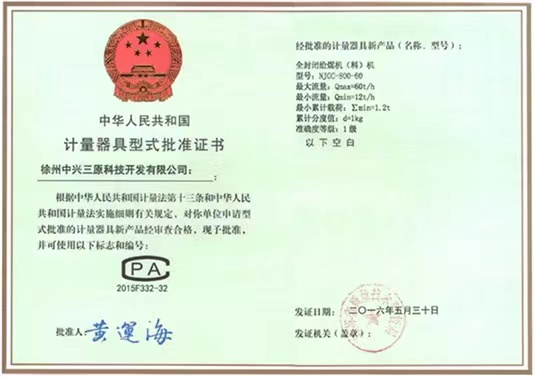 全封閉給煤機(jī)(料)系列批準(zhǔn)證書 |