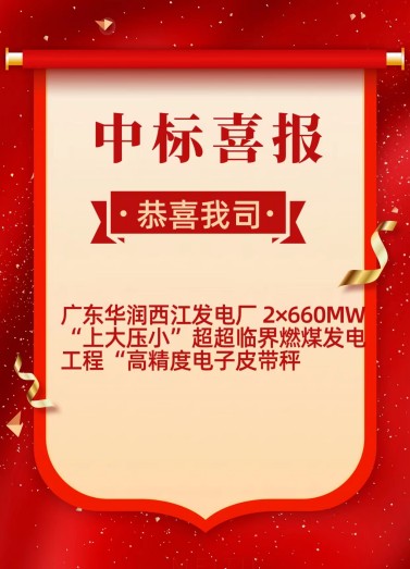 廣東華潤(rùn)西江發(fā)電廠高精度電子皮帶秤中標(biāo)喜報(bào) |